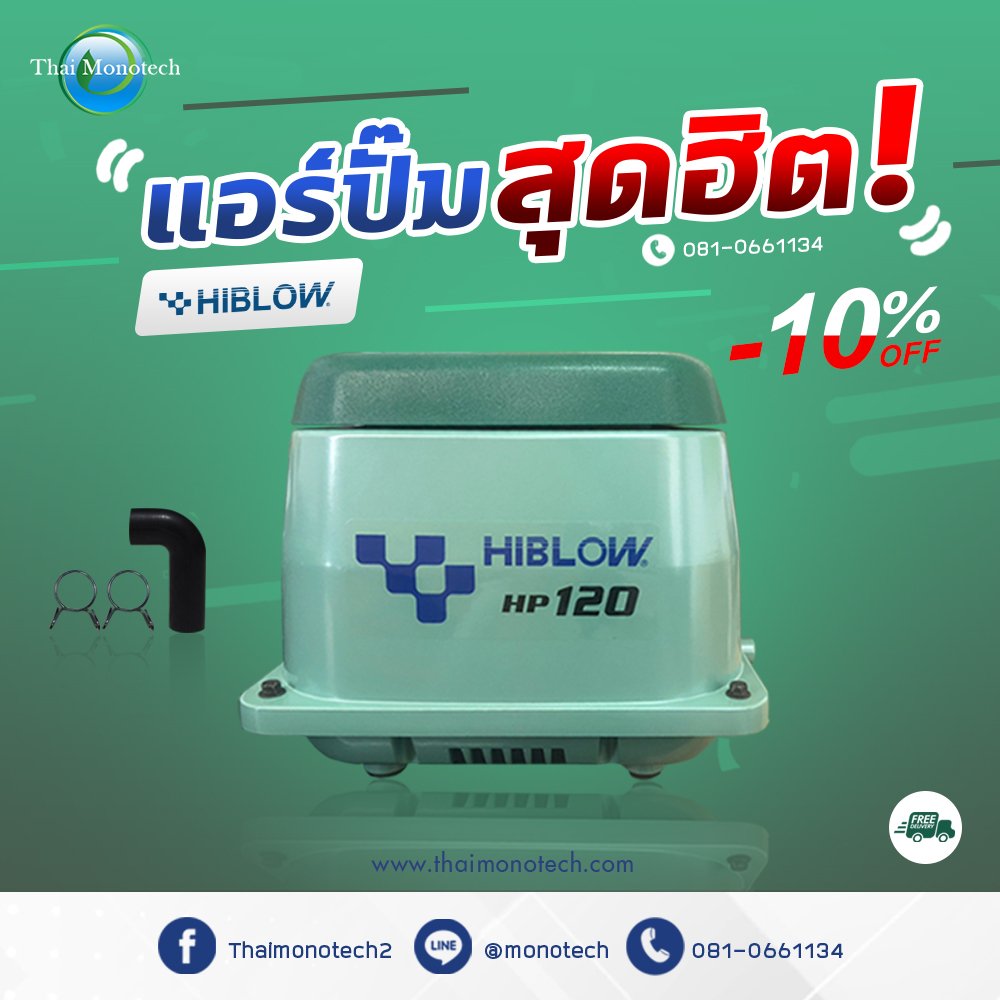 การเลือกใช้ปั๊มเติมอากาศ ไฮโบว์ หรือ Hiblow นั้น ควรจะเลือกให้เหมาะสมตามขนาดบ่อ เช่น ระบบบำบัดน้ำเสีย ควรเลือกให้เหมาะสมตามรายการคำนวณของวิศวกรสิ่งแวดล้อม หรือหากลูกค้าไม่แน่ใจ เรามีบริการให้ปรึกษากับวิศวกรสิ่งแวดล้อมฟรีครับ