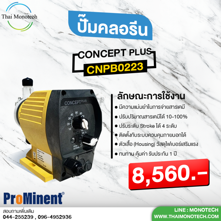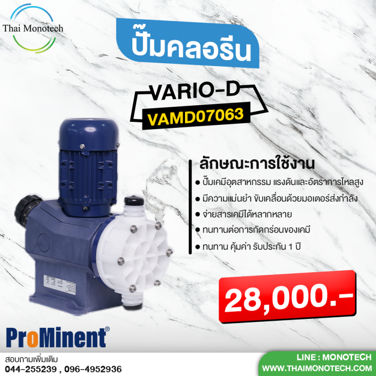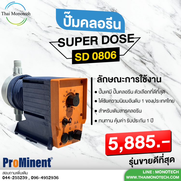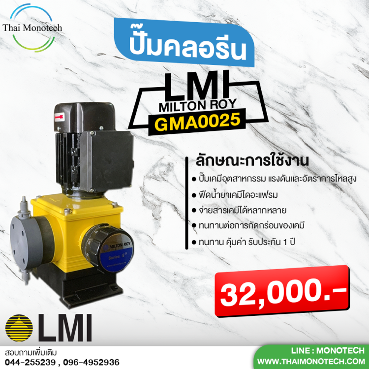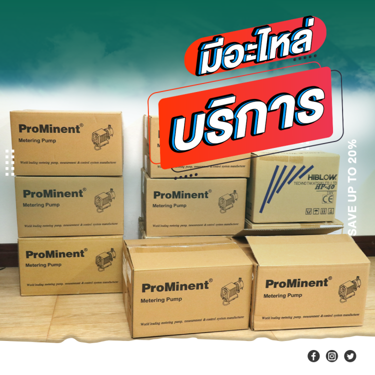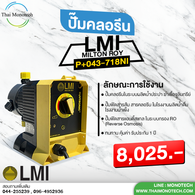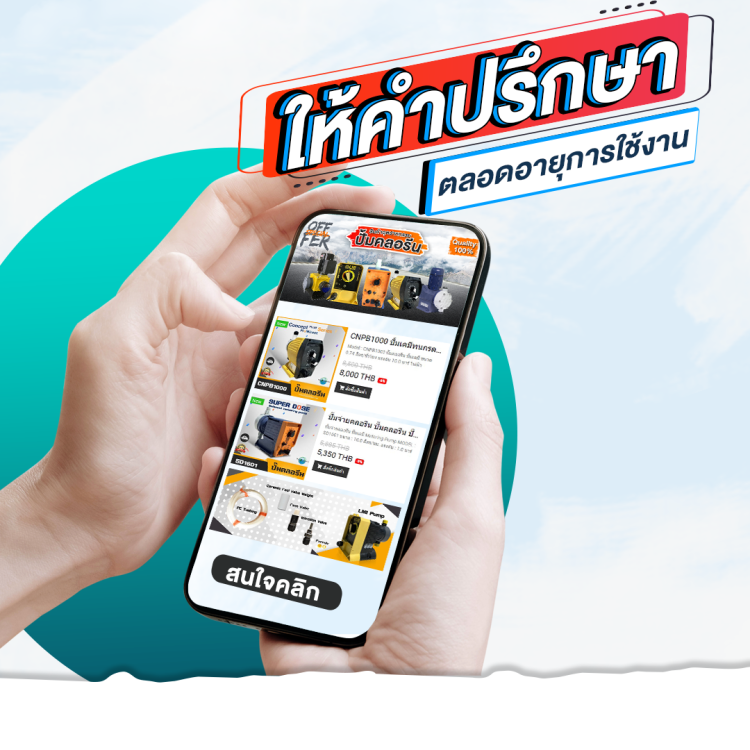 เช่น ปั้มจ่ายเคมี หรือคลอรีน ภายใต้แบรนด์ LMI MILTON ROY เป็นสินค้านำเข้าจากอเมริกา และแบรนด์ Prominent จากประเทศเยอรมัน